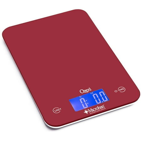 Ozeri Touch II Digital Kitchen Scale with Microban Antimicrobial Product Protection, 18 lbs Capacity: Industry exclusive scale features Microban antimicrobial product protectionHelps prevent the growth of stain- and odor-causing bacteria2 advanced touch-sensitive buttons, 4 high precision GFX sensors and a large Blue Backlit LCD screenCapacity range of 0.1 oz to 18 lbs or 1 g to 8000 gAward-winning thin designPrecision tare feature automatically subtracts the weight of the containerEasy unit button instantly converts between lb\/oz, g, fl oz, mlIncludes 2 lithium batteries and an easy access battery compartment (no screwdriver needed)